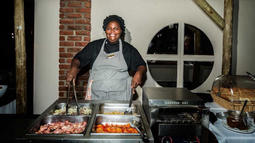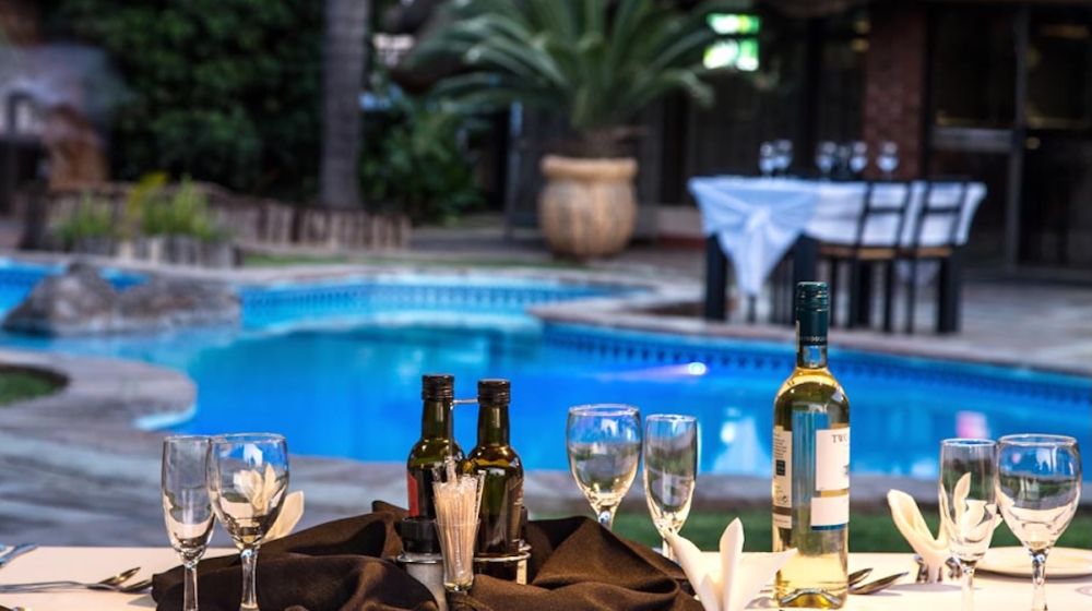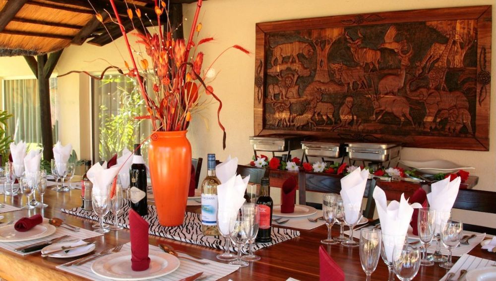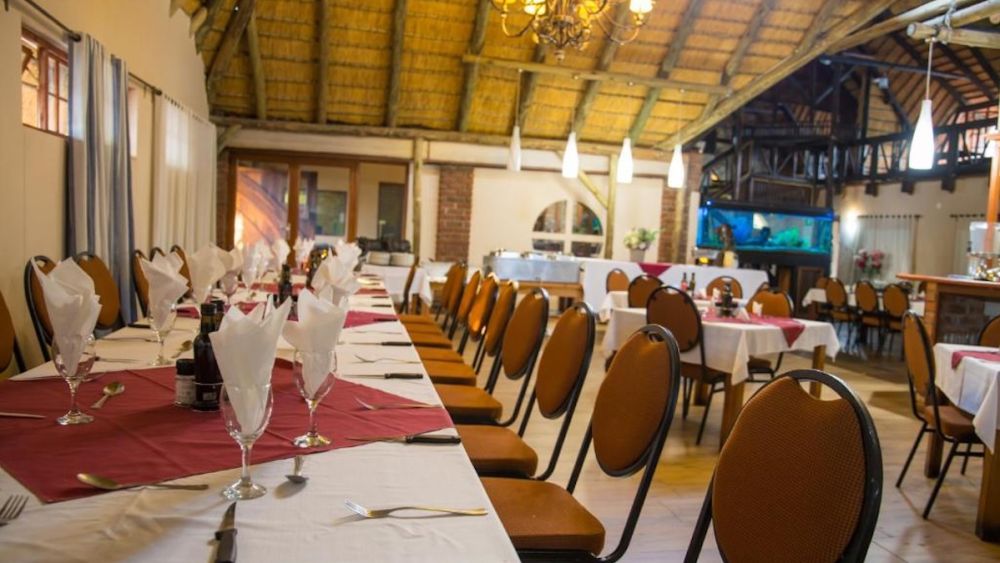 Our onsite restaurant boasts an atmospheric Namibian style Restaurant. The menu is al la carte with Daily Specials and South African wines. We are renowned for our well-prepared Game dishes, particularly Oryx and Kudu. We also cater for vegetarians. Our food is popular with the locals in Otjiwarongo and well-known to the rest of Namibia. Meals can also be enjoyed outside in our beautiful garden under our lapa or the stars.